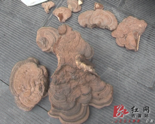 见到麻先生时,他和女儿正从白色编织袋中拿出一株紫褐色的盘状似灵芝的植物。这株状似“灵芝”的植物已被风干,并且裂成几块,最大的一块长约三四十厘米,宽二三十厘米,表面颜色呈紫褐色,冠部有一圈圈的环形花纹,底面凹凸不平,呈棕黄色。