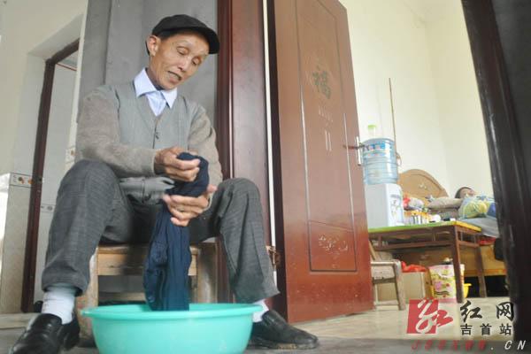 吴后保老人向往常一样给瘫痪在床的罗良志清洗当天换下来的衣服