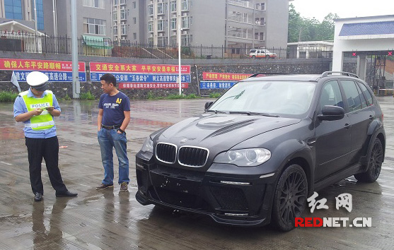(改装的宝马X5被民警截停)