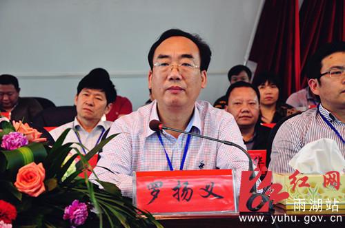 区人大常委会主任罗扬义主持会议,刘永珍、何锋、陈爱民、周复明、彭欣、喻少先、潘惠玲、张剑波、陈湘、刘石其、王志刚在主席台前排就坐。