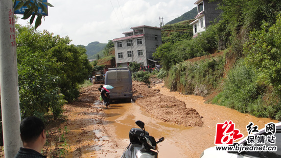 红网保靖站5月11日讯(分站记者 彭司进 通讯员 田青山)5月9日12时20许,由于连日降雨,湖南省保靖县卡棚水库下溪电站渠道出现决口,位于该县毛沟镇拱桥村王家冲的省道231线K146+100m处公路淤塞100多米,路面缺口长达8米一处,直接损失3万余元。