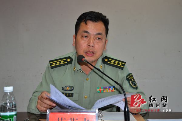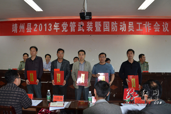会上,蒋燕飞汇报了去年全县武装工作,并就2013年民兵预备役工作任务进行了部署。2012年,靖州县被市委评为“党管武装模范县”,人武部被军分区评为“安全工作先进单位”,县民兵武器装备仓库进入广州军分区第一批达标单位。他说,今年的武装工作将围绕主题主线,持续抓好“一点两面”,以军分区赋予全县军民兵种兵专业技术分队正规化建设示范为牵引,努力推进人武部机关、基层武装队伍和全县民兵预备役建设科学发展。