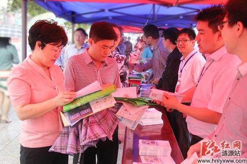 市领导走到各宣传点,向工作人员了解宣传情况。(黄石 摄)