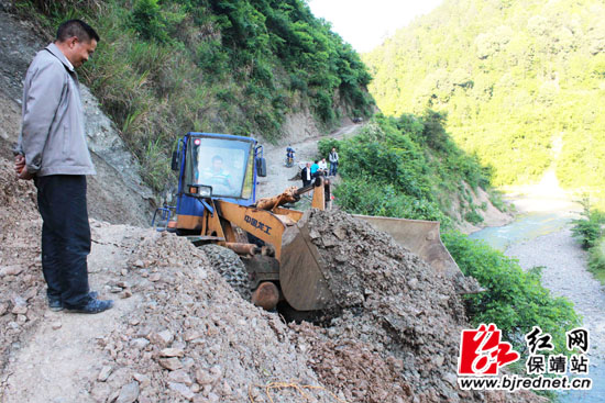 红网保靖站5月14日讯(通讯员 周恒江 龙清聪)5月12日,保靖县民政局驻水田河镇夯吉村工作队请来铲车,对堵塞入村主要通道的约300方沙石清理干净。受前不久大雨冲刷影响,进入夯吉村唯一的一条村道有三处被后坎坍塌的山石堵塞,严重影响村民运输春耕生产所急需的肥料、农药等生产物资。保靖县民政局驻夯吉村工作队深入坍塌地段查看,积极联系工程车辆,及时打通了入村道路,受到村民的一致好评。