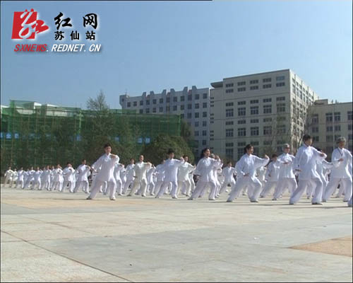苏仙区民间体育推广协会的健身爱好者们正在打太极