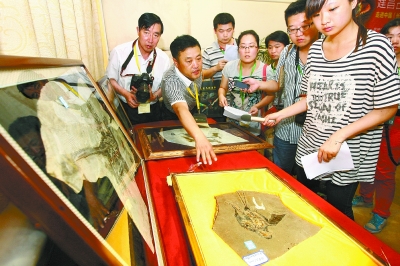 据介绍,将在此次矿博会上亮相的众多展品中,有两件最引人注目。一件是迄今世界上最早的带羽毛恐龙,身长约34厘米、重量约110克的赫氏近鸟龙。赫氏近鸟龙的发现被世界古生物学家誉为“代表鸟类起源一个新的、国际性的重大突破”,比德国始祖鸟还要早1000万年,填补了从恐龙向鸟类进化史上的关键空白,并且是第一个通过科学手段确定其羽毛颜色的恐龙。另一件则是被誉为“来自中国的侏罗纪母亲”的中华侏罗兽,它是世界上最早的真兽类(有胎盘类)哺乳动物,该发现把对真兽类哺乳动物化石记录的认识又提前了约3000万年。
