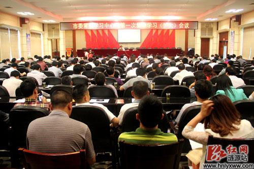 红网涟源站5月17日讯(分站记者 黄石)5月15日上午,涟源召开市委常委中心组第一次集中学习(扩大)会议,特邀省委党校常务副校长、管理学博士、博士生导师徐晨光教授作“实现民族复兴的中国梦”主题讲座,旨在认真学习贯彻习总书记的重要讲话精神,全面系统地解读“中国梦”的精神实质,为早日实现“中国梦”加油鼓劲。涟源市委书记曾益民主持会议,市领导宋建明、梅国华、贺顺清、朱桂良、肖更新、谢永东、梁小兵、马光明及在家市级领导、市直单位、乡镇办事处主要负责人共300余名党政领导聆听了讲座。