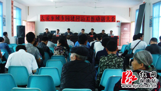 日前,保靖县大妥乡召开城乡同建同治工作动员大会,该乡党委书记彭司刚作了讲话,党委副书记、乡长彭明勇主持会议,大妥乡政府全体干部,各村支部书记、各村计育专干、乡直各单位负责人,该乡小二型水库负责人参加了大会。