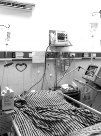 5月17日晚8点,周石文躺在攸县中医院重症监护室,医生称其仍未脱离 危险。 本报记者摄