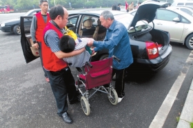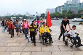 红网株洲5月20日讯(长株潭报记者 伍婷婷 彭丽君)“来了,来了,赶紧过去扶他们……”昨日上午9时半,在神农城等候多时的志愿者一看到13个残疾人走下车,赶紧走过马路,推轮椅、搀扶、指引,井然有序地各自分好工。昨天是第23个全国助残日,主题为“帮扶贫困残疾人”。这是《长株潭报》CZT微公益发起的“助残·圆梦神农城”的活动现场,株洲县博爱义工联合会、株洲雷锋团的12名志愿者帮13个残疾人畅游神农城。