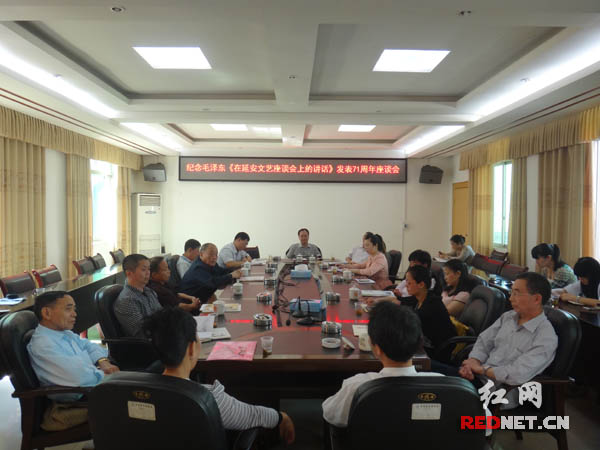 (湘江源头蓝山县召开纪念《毛泽东延安文艺座谈会上讲话》发表71周年文学笔友座谈会。)