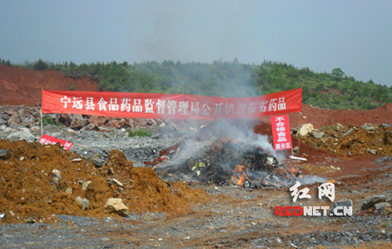 红网宁远5月23日讯(通讯员 欧霞)为展示打假行动成果,彰显公安机关打击制假、售假犯罪的决心,有效提升群众识假防假意识,5月21日,湖南省宁远县公安局联合食品药监局在宁道公路星城混凝土公司附近空地,将打假专项行动以来缴获的涉案假冒药品、商品进行集中销毁。此次活动共销毁各类假冒伪劣商品上千件,价值约四万元。通过此次集中公开销毁假冒伪劣食品药品活动,有效震慑了造假、贩假和卖假的不法分子,进一步提高了广大人民群众同不法行为做斗争的自觉性,确保广大群众的食品药品安全。同时,通过电视台的集中采访报道,营造了一个人人关注、人人参与打假专项行动的浓厚氛围。