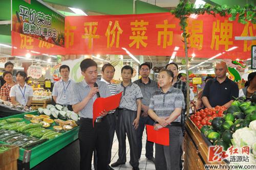 红网涟源站5月29日讯(通讯员 易海和)5月23日,随着涟源市委常委、常务副市长吕余庚,市人大常委会副主任傅德贤在心连心超市、蓝田市场为桥头河蔬菜基地直供的平价菜市揭牌,实现了让老百姓吃上新鲜菜、便宜菜、放心菜的梦想,标志着我市蔬菜基地与超市的对接、生产者与消费者互惠互利的新局面初步形成。