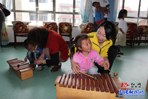 5月30早上8点,5岁雅安小女孩袁珠珠,走进金贝贝幼儿园时仍紧紧地抓着爷爷的手,显得有点不知所措。在4月20日四川雅安芦山县发生的7.0级强烈地震中,家住雅安市芦山县宝盛乡凤头村的袁珠珠家房屋受损严重,经过一场地震后小珠珠开始变得有些沉默。在金贝贝幼儿园里和邵阳的新伙伴玩了一阵后,小女孩袁珠珠慢慢地放松了起来,笑容也开始变得很灿烂。陪同她的72岁的爷爷告诉记者,“这是小珠珠震后第一次笑得这么开心”。