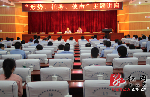 红网宁远站5月30日讯(分站记者 陈国宏)5月29日,国防科技大学教授、中华教育艺术研究会理事、湖南省演讲学会副会长徐佐林在县政务中心102会议室作了题为《形势、任务、使命》主题演讲。副县长、县公安局局长宋志雄,县公安局政委周平及县委政法委、县委宣传部、县公安局全体民警、职工等240余人聆听了讲座。