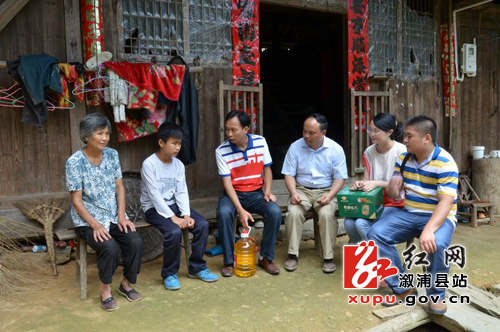 两江学校六年级学生陈家俊有点害羞,平常比较沉默。但是他学习上的认真和生活上的乐观,给人的印象很健康、聪明。活动当日,陈家俊带领大家走进他家,破旧的木房子里年迈的奶奶正在忙着家务。奶奶介绍说,家俊的母亲已离家出走,父亲常年外出不回家,对他不管不顾。但年小的家俊非常懂事,经常帮助奶奶提水,做一些力所能及的体力活,平时在学校的学习成绩也不错。