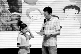 《亲子书信对白》环节,朱芸萱和爸爸真情对白。易波摄