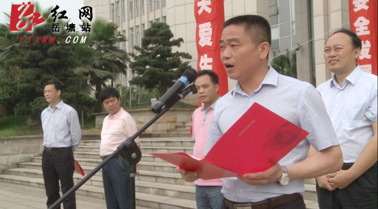 岳塘区委副书记、区长王永红王永红在启动仪式上就“安全生产月”活动作讲话