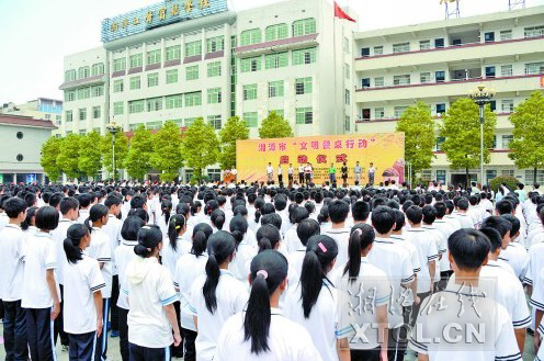 启动仪式在有6000多名学生的湘潭县江声实验学校进行。市文明办等十部门向市民和餐饮经营者倡议:节俭用餐,不剩菜,吃多少点多少;安全用餐,不用地沟油,不用变质食品;卫生用餐,使用公筷公勺,提倡分餐制;文明用餐,讲究餐桌礼仪,不喧闹酗酒。