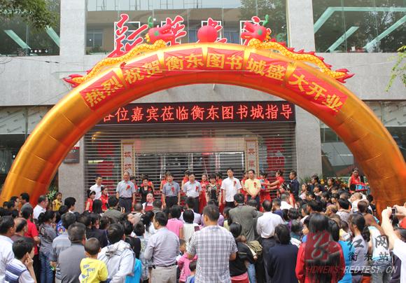 红网衡东站6月2日讯 (通讯员 侯云驰 邓晓斌)5月31日,湖南省新华书店在全省建立的第一个县级图书城——衡东图书城在罗荣桓元帅的故乡衡东县正式开张营业,在这里不仅可以买到图书,你还可选购“iphone”、“iPad”等时尚数码产品,甚至参加“早教”、“摄影”等文化沙龙。这标志湖南省新华书店“建设现代连锁企业,提升新华书店的品牌影响力和市场竞争力”在县区一级迈出重要步伐。