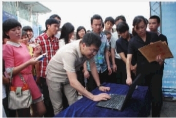 6月2日下午,广汽菲亚特汽车有限公司销售总监徐巍按下电脑键盘抽取出车展终极大奖得主。记者 陈龙 摄