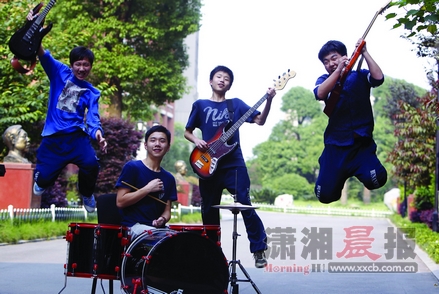 5月23日,长郡中学AP课程中心的余超(左二)正与乐队成员一起欢乐合影。阳光、开朗、坚定是班主任对余超的评价,这些也许就是他的成功之处。余超即将赴美国布朗大学留学。