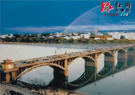 1961年10月1日,在共和国成立12周年的这一天,大桥正式通车。省、地、市1万多人参加了庆典数十辆大小汽车列队隆隆从桥上驶过。时任湖南省委书记兼湘潭地委第一书记的华国锋参加大桥通车剪彩。