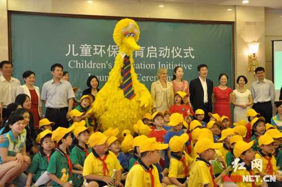 由儿童节目芝麻街的“大鸟”与长沙儿童共同号召节水,来作为系列合作的起点。保尔森中心副主席戴青丽(DehorahLehr)称,要传达的信息就是环保教育要从孩子开始。