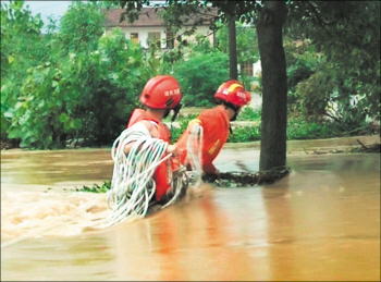 本报讯(记者 孙占锋 通讯员 吴林芳 曾小虎)自5日晚上开始,湖南发生了一次入汛以来最强降雨过程。“暴雨,特大暴雨!27户40多人被困,且水位仍不断上涨,房屋随时可能倒塌!”前日17时20分许,常德市公安局澧县消防大队接到澧县雷公塔镇樟树村报警。随后的4个多小时内,消防官兵迅速赶到现场,冒着齐胸深的洪水成功将25名被困群众救出,包括多名老人、婴儿和产妇。