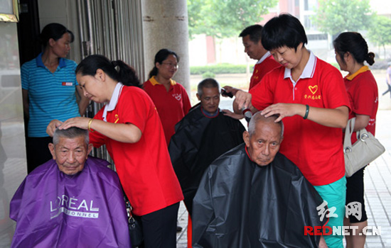(志愿者为老人理发)