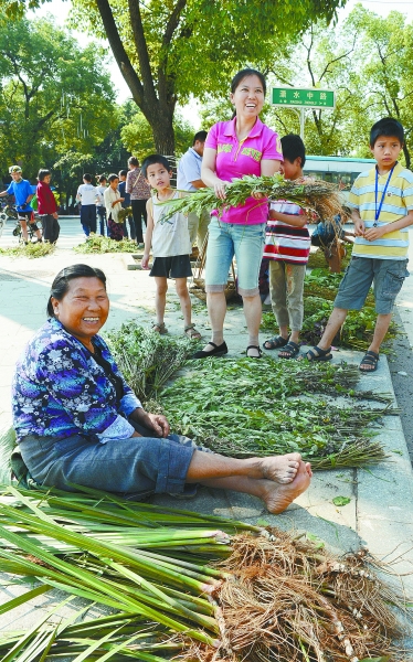 这天,潇水中路的人行道上,早早摆满了地摊,卖艾叶卖菖蒲卖千里光等中草药的一个挨一个。
