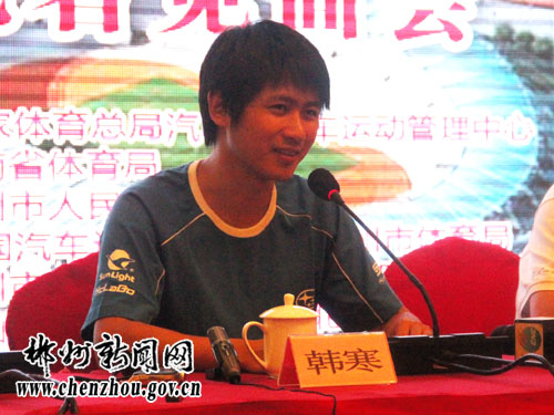 红网郴州站6月14日讯(分站记者 何嫘 周小丽 王卓君)2013年郴州·中国汽车拉力锦标赛将于6月14日正式拉开帷幕。6月13日,2013年郴州·中国汽车拉力锦标赛赛前部分车手与记者见面会举行,韩寒、雷海林、徐俊、陈德安等国内赛车高手出席见面会。