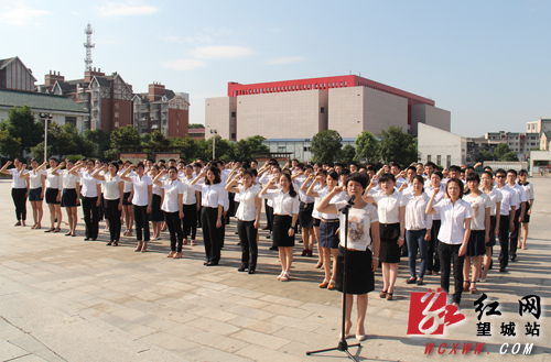 全体培训学员在雷锋塑像下庄严宣誓(刘赛 摄)