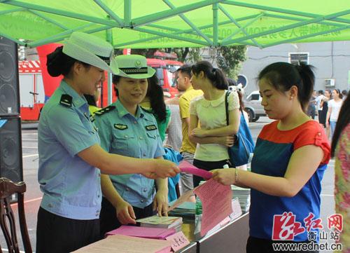 “安全生产月”启动现场,衡山交警开展交通安全咨询服务。