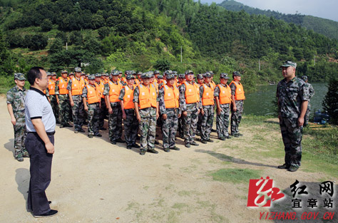 宜章地理位置和气候条件特殊,历年洪水灾害多发、重发。该县高度重视抗洪抢险工作,近年共添置了两艘12座冲锋舟,并组建了县民兵舟桥分队,常态化开展高强度培训和拉练,目前,民兵舟桥分队拥有熟练冲锋舟操作手24名,水性好、素质强的水上救生突击队员70名,成为该县水上抢险救援的一支“轻骑兵”。