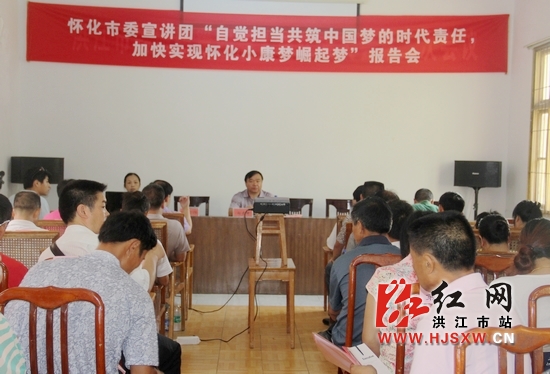 红网洪江市站6月24日讯(分站记者 李林 通讯员 邓海林)“真是讲得太好了,我回去后一定会向村民传达好‘中国梦’的精神内涵,积极发展村里产业,带动村民建设新农村!”6月24日上午,湖南省洪江市黔城镇政府会议室座无虚席,该镇全体党政干部、村支两委和人大代表齐聚一堂,认真听取了怀化市委宣讲团开展的“中国梦”宣讲报告会,来自该镇鱼塘溪村支部书记杨仁松听完报告如是说。