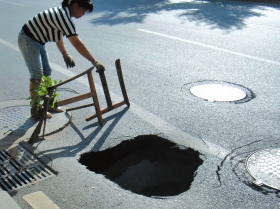 红网株洲6月24日讯(长株潭报记者 张俨)昨日下午4点40分,株洲市荷塘区株浏路口公交车站台旁的路面突然塌陷,随后出现一个直径半米的圆形缺口。这个圆形坑位于株洲市荷塘区株浏路口,距最近的公交车站相距不到20米。目测坑洞与地面的距离在1米左右。记者随后在现场做了个统计,一分钟内,过往的车辆有近百台。
