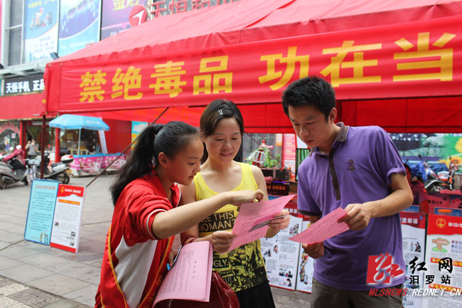 红网汨罗站6月26日讯(分站记者 张汨君)6月26日,是国际禁毒日。为提高全民禁毒、防毒意识,传播以人为本的戒毒理念,在天恒超市广场,市禁毒委员会组织公安局禁毒大队、团市委、妇联、疾控中心等单位联合开展了以《蓝结在行动,大爱满人间》为主题的大型禁毒宣传活动。团市委还特别组织了20名来自罗城学校的禁毒志愿者共同参与禁毒宣传。