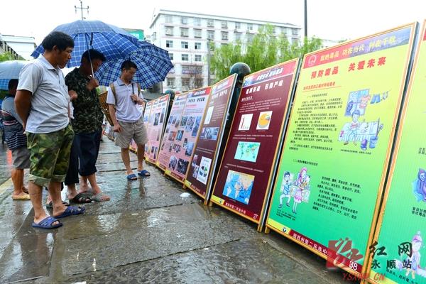 红网永顺站6月26日讯(通讯员 余光龙)6月26日,永顺县禁毒委员会、公安、司法、疾控中心等部门组织开展多种形式的国际禁毒日宣传活动,通过图片展示、现场咨询、发放宣传资料等,使广大群众自觉防范和抵制毒品、远离毒品的侵蚀,提高对毒品危害的认识,营造全民禁毒教育良好氛围。