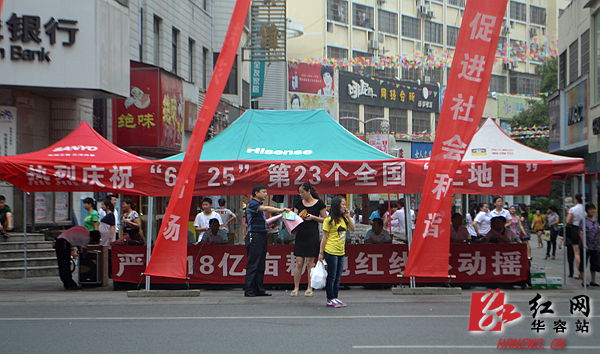 红网华容站6月26日讯(分站记者 蔡建业) 2013年6月25日是第23个“全国土地日”,宣传主题是“珍惜土地资源,节约集约用地”。一大早,华容县国土资源管理局在步行街设立咨询台向过往群众宣传节约集约用地、保护耕地和国土资源政策法律法规等知识。