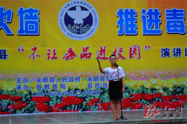 此次演讲比赛由县政府、县禁毒委主办,县教育局、县民政局承办,目的在于关注青少年健康成长,提高广大青少年对毒品的警觉性,在校园建立起牢固的禁毒防线,县城各校600余名师生代表观看了比赛。围绕“不让毒品进校园”的主题,选手们从不同角度陈述毒品给个人、家庭和社会带来的严重危害,谈论增强禁毒意识、提高识毒防毒拒毒能力的重要性。他们激情、生动的演讲,揭示了毒品的危害,教育人们尤其是广大青少年要珍爱生命,远离毒品,拒绝诱惑,保持健康、良好的生活习惯,充分展现了中小学生的良好的精神面貌和社会认知。