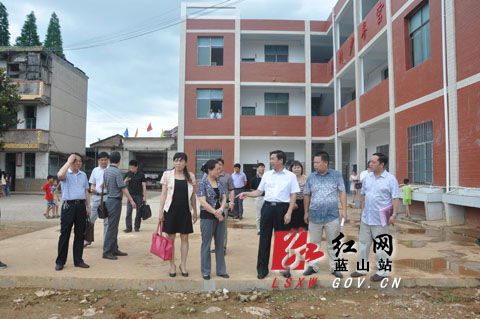 红网蓝山站6月27日讯(分站记者 何明贵) 6月26日上午,蓝山县委副书记、县长冯德校在县委常委、宣传部长刘素萍,县人民政府副县长吴新波,县正处级干部李雪章、贝贤龙的陪同下来到楠市镇中心小学,就全县2013年义务教育合格学校建设情况进行现场办公。冯德校强调,各相关部门要提高认识、强化措施、加强领导,认真做好今年5所省级合格学校建设,全力将楠市中心小学打造成全县的品牌学校,全面推进我县教育事业健康可持续发展。