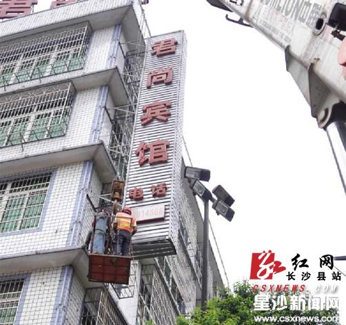 红网长沙县站6月28日讯(分站记者 盛磊 赵鹏 通讯员 李志军)日前,长沙县城管执法局经过摸底,发现城区内的竖式招牌达数千块,按照今年5月起实施的门店招牌设置规定,门店招牌只能一店一牌,且只能横向、不能竖向。昨起,县城管执法局联合公安、交警、街道等部门对十六条主次干道不符规范的竖式招牌进行了拆除。
