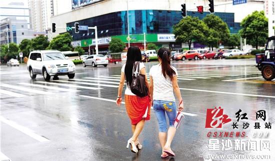 昨日下午3 时,在开元路与星沙大道路口,斑马线就在不远处,两行人图方便却选择横穿马路。章帝 摄
