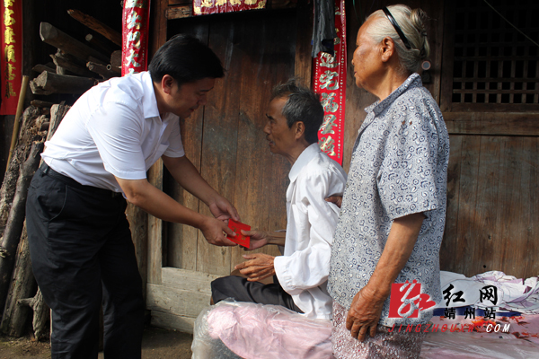 最后,钦代寿一行来到太阳坪乡土溪村8组,看望了73岁的五保户明运杨。明运杨常年体弱多病,生活艰难。钦代寿递上慰问金,亲切地对明老说:您生活上有困难就找组织,我们一定会想办法帮助您。