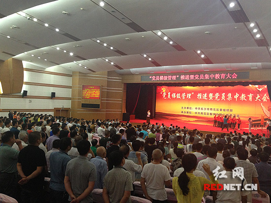 红网长沙6月29日讯(记者 廖洁 实习生 王晶晶)6月29日上午,长沙市雨花区黎托街道召开推进“党员梯级管理”暨党员集中教育大会,辖区内全体党员齐聚雨花大会堂,以推工作、听党课的形式庆祝党的92周岁生日。
