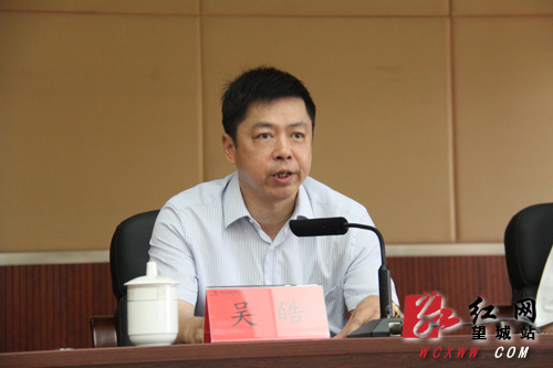 望城经开区管委会主任吴皓在会上讲话(刘赛 摄)
