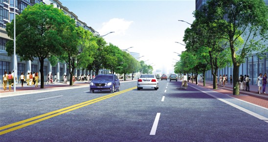 提质改造后的远大二路将两车道拓宽为四车道,并增设非机动车道和人行道,按一级市政道路建设。效果图
