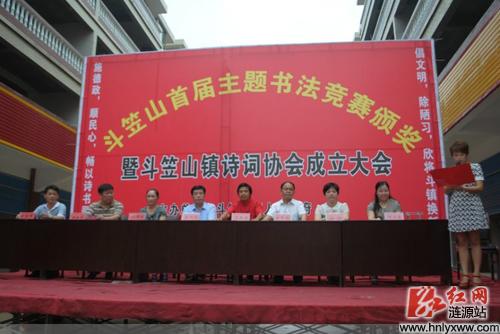 斗笠山镇有“湘中第一镇”之称,这里是人文蔚起之地,诞生了大批历史文化名人。著名的湘军名将肖庆衍、诗词界文化名人谢挽澜等都诞生在这里。斗笠山镇又是一个经济强镇,有“湘中煤海”之称,为娄底市和涟源市的经济社会发展做出了重要贡献;斗笠山镇还是一片文化沃土,诗词书画独具特色。斗笠山镇诗词分会筹备成立两年来,已编辑出版《斗笠山诗报》和《斗笠山诗刊》,为经济强镇、文化兴镇做出积极的贡献,营造了煤海中的一片绿洲。李汉田在讲话中要求斗笠山诗协分会以这次盛典为契机打造地域文化品牌,为斗笠山三个文明建设增添一道靓丽的文化景观。
