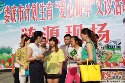 红网涟源站7月2日讯(分站记者 黄石 通讯员 曾琼 易丹)在7月11日第24个世界人口日来临之际,7月1日上午,涟源市计生局机关院内人头攒动,彩旗招展,涟源市计划生育“爱心助孕·圆梦家庭”义诊活动在这里举行, 200余对来自涟源各乡镇的不孕不育育龄夫妇闻讯而至,到现场接受义诊。